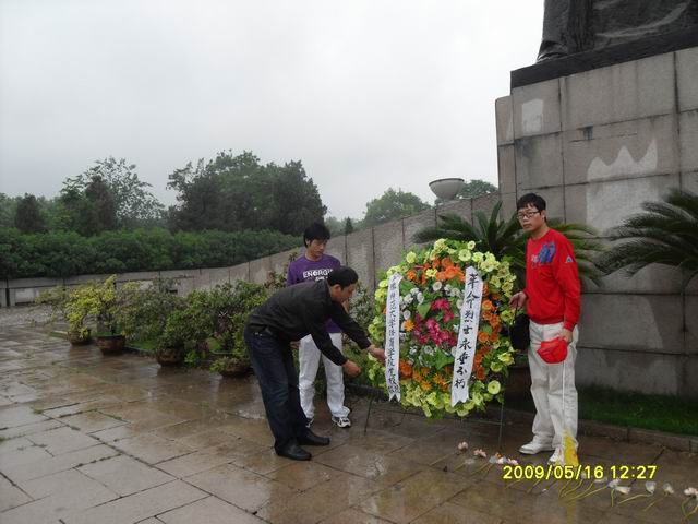 早晨7点30出发,经过两个小时的行程,9点30分同学们进入侵华日军南京大屠杀遇难同胞纪念馆。大量文物,铁的事实,使同学们对这段屈辱史有了更深一步的了解,尤其是参观万人坑时,更加激发同学们强烈的民族自尊心,中国必须进步、必须发展,否则就会挨打。11时许,结束了侵华日军南京大屠杀遇难同胞纪念馆的参观,同学们又来到雨花台参观凭吊,王猛、孙波同学和崔老师代表本期培训班全体学员向烈士纪念碑敬献了花圈,同学们列队面向烈士纪念碑默哀。