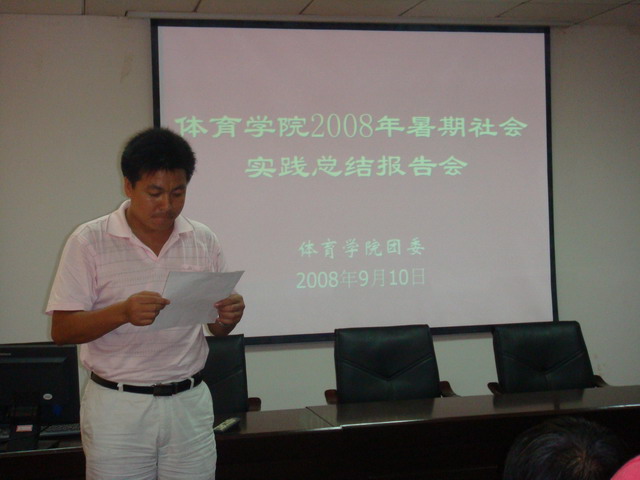 为响应校团委的号召,积极配合学校开展暑期社会实践总结汇报工作,9月10日下午4:00,437ccm必赢国际版团委在院行政楼二楼会议室召开了学院2008年暑期社会实践总结汇报会。437ccm必赢国际版党委书记贡植斌老师、院长雷震教授、党委副书记钟晨老师、副院长席玉宝教授、副院长杨强老师出席了本次汇报会并担任了组织奖的评委,全体辅导员参加了会议,院团委书记黄德春主持会议。