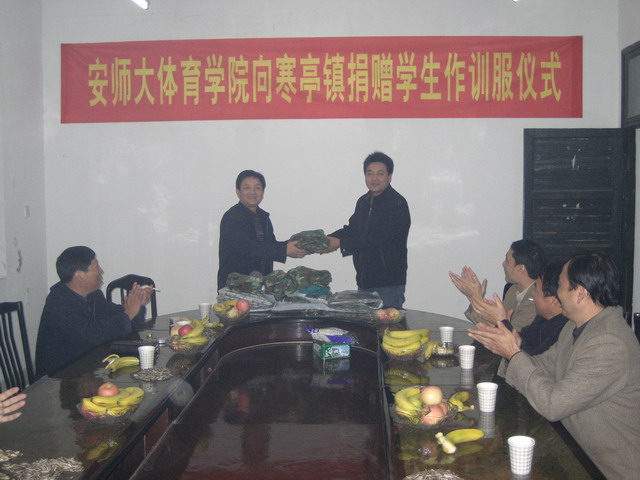 11月1日下午,我院团委前往宣城市向寒亭镇人民政府捐赠军训服装,437ccm必赢国际版党委副书记钟晨老师、办公室主任殷发顺老师、团委书记黄德春老师、学生第三党支部书记崔世兵老师、08级辅导员陈实老师及寒亭镇人民政府的相关领导出席了捐赠仪式。