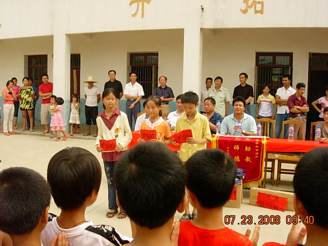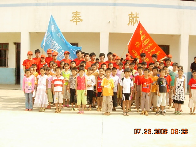 7月24日上午8点钟,我院暑期社会实践重点团队的队员们都怀着激动的心情坐上赶往新阶石庙小学的车上。在到达石庙小学后,看到了小学生们在学校门口站成两排欢迎我们并且一边鼓掌,一边呐喊着。当时的气氛着实感动了在场的每一位队员,走进小学后,一栋两层高的教学楼,很小的操场上仅有的只是两张水泥成的乒乓球台,以及破旧不堪的桌椅。接着便是捐赠仪式,我们把前段时间我们义演所筹集善款的大部分都捐给了贫困的学生们,而剩下的一部分则给学生们买了文体用品。石庙小学的校长也送给了我们一份珍贵的礼物,石庙小学专门为437ccm必赢国际版暑期社会实践小分队写了一封热情洋溢的感谢信,并赠送了一面“弘扬师德,爱心助教”的感谢的锦旗。