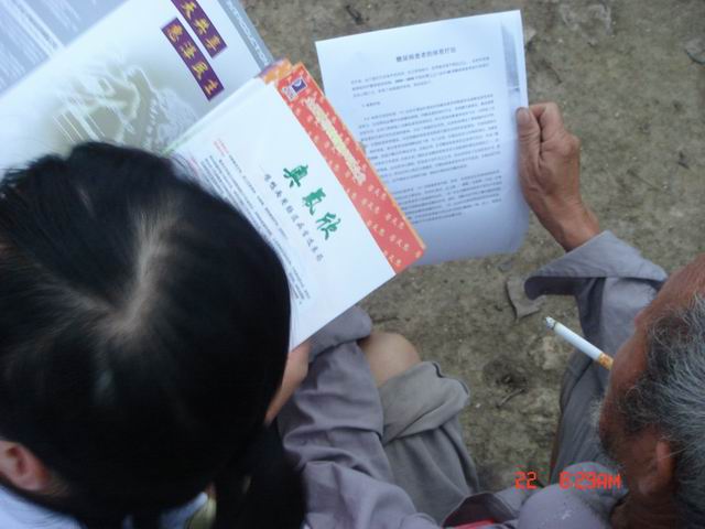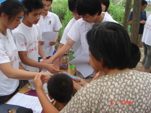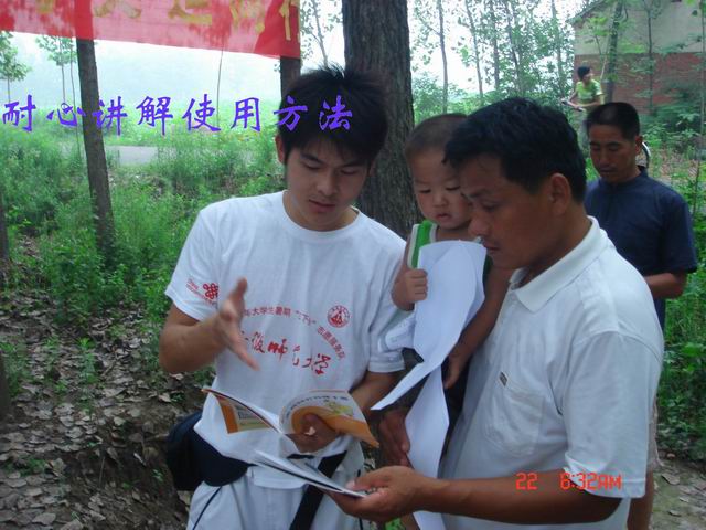 实践小分队抵达该镇后,受到了村政府的热情接待,队员们也不顾征途疲劳,随即投入实践宣传活动,利用集市、入户走访等方式张贴标语、发放宣传资料,向村民们传授养殖技术和各种药物的使用方法,指导当前农村科技知识等。现场参加宣讲活动和咨询村民达百余人。宣传活动加深了团员们对和谐社会建设主题的理解,进一步激发了团员们奋发读书、投身教育、立志成才、传播科学圣火的决心和热情。同时,活动内容与形式受到了当地老百姓的广泛欢迎。