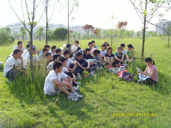 5月31日下午,437ccm必赢国际版全体入党积极分子在班主任操伊芬老师带领下,来到教学楼前的草坪上以一种轻松愉悦的方式学习胡锦涛总书记在北大的讲话。