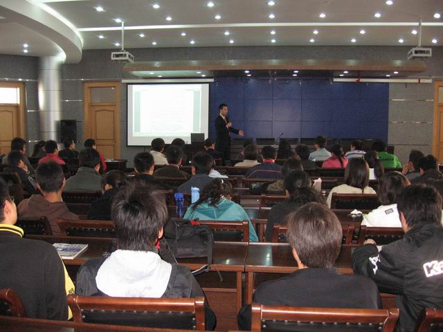 接着他又为大家阐述了怎样创业,他指出成功的关键就是勇于尝试,勇于开拓新市场,有好点子就要敢去做。还包括敢于尝试失败,他也从自己的自身经验向大家讲述了要乐观的面对失败,其间也触及到很多现实问题,社会与学校之间的差距,人与人之间存在的利益冲突等。耿国星指出,创业过程中心态很重要,他强调创业是一个艰苦的历程,自始至终都要抱着自信,乐观的态度,学会坚持、忍耐,同时也要不放松学习,做好知识的储备。