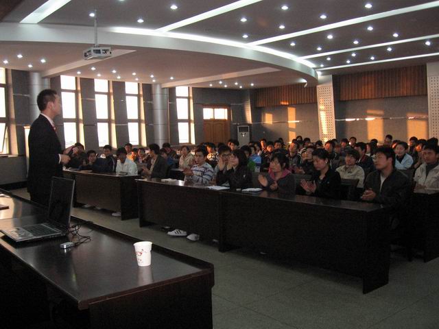 随后,进入现场互动讨论环节,耿国星先生对同学们的问题作了详细的回答,与台下听众作了很好的交流,同学们都表示从他的亲身经历中受到一次如何就业、如何创业的启发,对如何规划自己的职业生涯和树立正确的择业观起到了积极的作用。