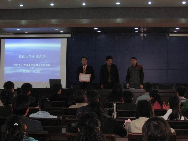 耿国星先生的报告主要围绕“为什么创业”和“怎样创业”展开。他首先介绍了自己创业的过程,他说,一个人的思想决定了创业的格局。他大一开始就尝试着的第一家理发店发展到现在已经成为拥有3000多平方面积的健身会所和50多名员工的香港豪仕堡健身管理有限公司的董事长,其发展规模及发展速度不仅取决于机遇,更重要的是对自己成功的职业生涯规划。他表示今天不仅是为了给我们介绍这些年自己在创业历程中积累的经验,更是希望我们面对未来的挑战应充分准备好自己的职业生涯规划。