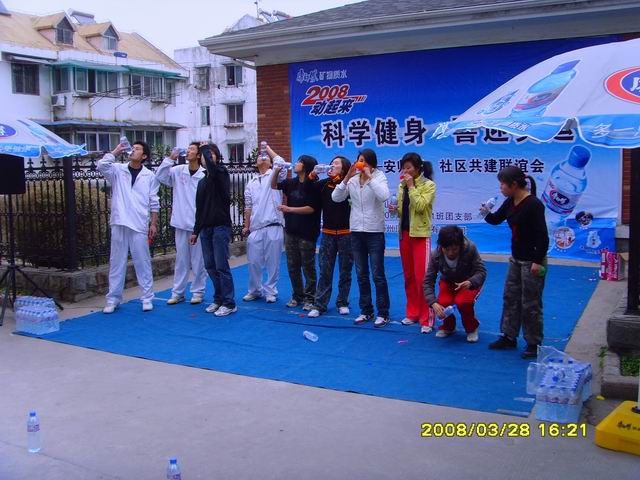 为了迎接我校八十周年校庆,结合我院第二届青年志愿者竞赛日活动安排,落实“校园文化与精神文明建设”方案。437ccm必赢国际版的百余名学生于3月28日下午2点齐聚殷家山社区,参加由镜湖街道殷家山社区党委和bwin必赢线路检测06级体育教育1班团支部主办,康师傅控股顶津食品有限公司协办主题为“科学健身,喜迎奥运” 的社区联谊活动。