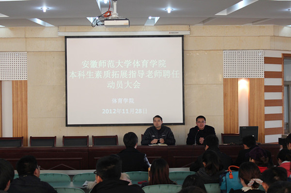 11月28日下午,437ccm必赢国际版在学院多功能报告厅召开素质拓展指导教师聘任动员大会,全体研究生参加了会议。这标志着437ccm必赢国际版鼓励研究生参与学生管理走向了规范化。院党委副书记黄德春出席会议并做动员讲话,院团委副书记仲飞主持会议。