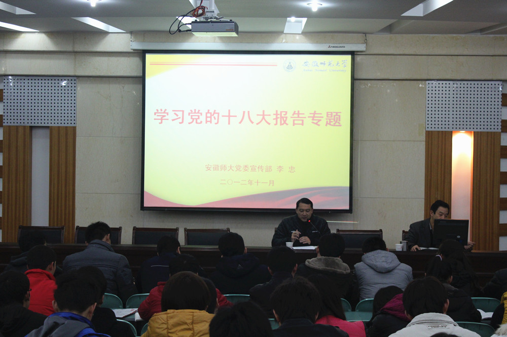 11月30日晚7点,437ccm必赢国际版第17期分党校培训班邀请校宣传部部长李忠,为本期党校入党积极分子作了一场《学习党的十八大报告》专题辅导。437ccm必赢国际版党委副书记黄德春、学院全体专兼职辅导员以及全体本科生党员近两百人旁听了本场辅导。
