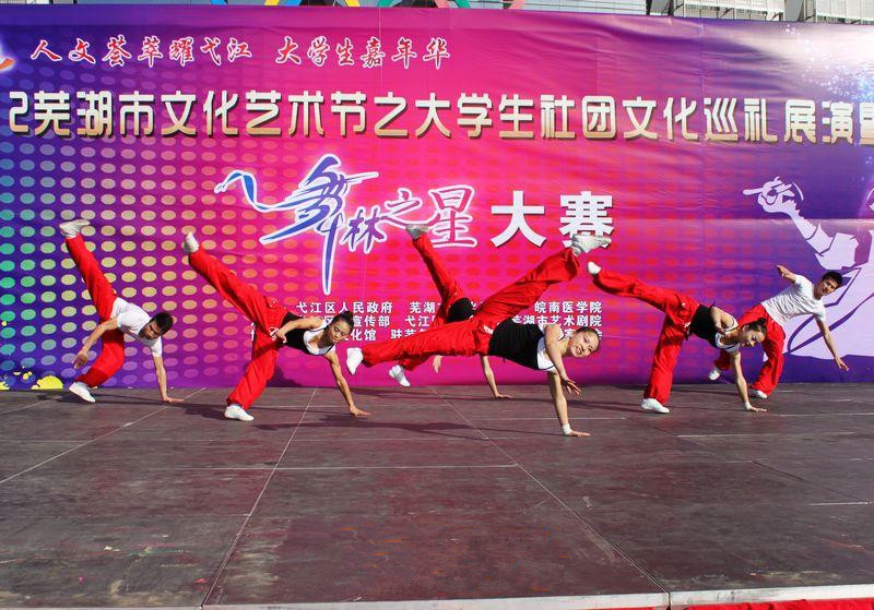 11月11日下午, “人文荟萃耀弋江”——2012芜湖市大学生嘉年华社团文化巡礼暨“舞林之星”大赛在奥体广场举行。共有来自江城的8所高校选送的24个节目参加了此次大赛,整场大赛精彩纷呈,表演形式多种多样。