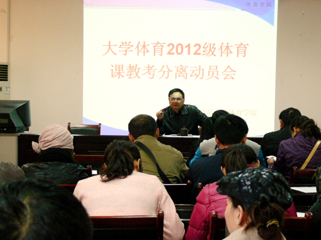 11月14日下午,437ccm必赢国际版在学院二楼会议室召开大学体育教考分离动员会,大学体育部全体任课教师参加会议。会议由院长雷震主持。