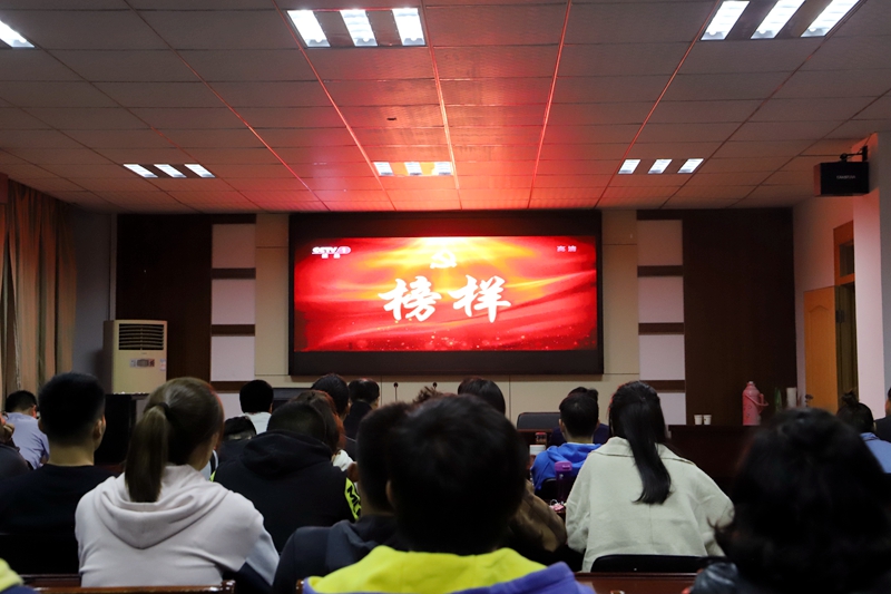 本网讯(437ccm必赢国际版 孙明月)10月21日晚8点,437ccm必赢国际版党委组织学院党员在学院二楼会议室集中收看由中共中央组织部和中央广播电视总台联合制作的专题节目《榜样4》。院党委书记袁德水、副书记崔世兵、副院长钟晨、金涛、余涛及师生党员代表参加了本次观影活动。