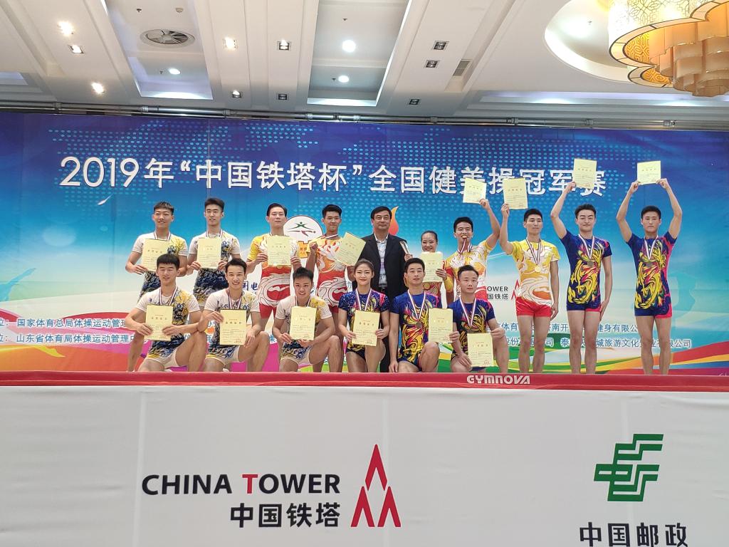 本网讯(437ccm必赢国际版 王艺兰)2019年全国健美操冠军赛日前在山东泰安落下帷幕。我院2019级专业硕士郭晓天同学在比赛中表现优异,荣获全国健美操冠军赛五人操第三名,经国家体育总局审批获得“国家健将级运动员”称号,这是我院培养、输出的第一位“国家健将”级健美操运动员。