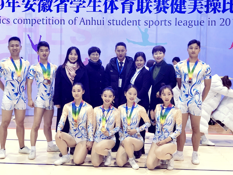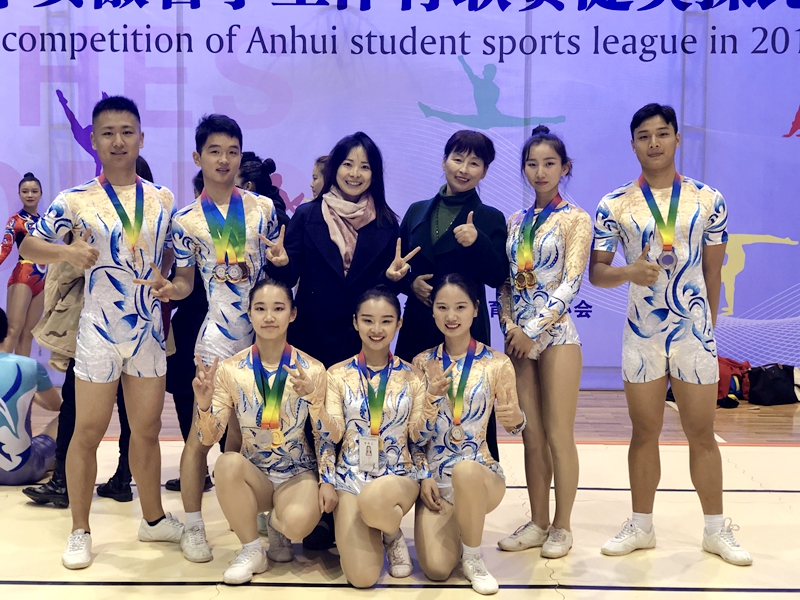 本网讯(437ccm必赢国际版 孙明月)2019年12月2日-8日,安徽省学生体育联赛健美操比赛在安徽工程大学体育馆举行。全省共有18所本科高校、18所高职高专院校共计309名运动员参加了比赛,我校由437ccm必赢国际版院长席玉宝教授带队,参加了甲组和丙组两个组别的比赛,金迪、程燕老师担任甲组教练员,梁颖、王艺兰、郝利玲老师担任丙组教练员。