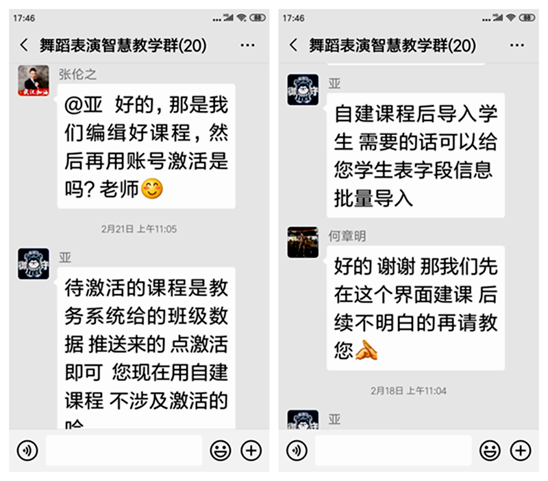 据悉,本学期我院共有开设85门课程,所有课程都已于3月2日开始进行线上教学。为保障线上教学效果,前期,除了帮助老师熟悉操作学习通软件外,针对体院术课特点,学院还安排青年教师制作简易版《腾讯会议操作指南——手机端》,方便老师开展视频教学。同时,学院制作了微信小程序《体院学院专业课程线上教学日报》,针对线上教学中出现的问题及时反馈及时处理。各课程组发动力量,邀请学习通超星软件工作人员进教师群指导教师熟悉操作教学软件,加强与外校教师交流,取长补短,共同提升教学技能。截至目前,网络平台运行顺畅,教师与学生互动良好,线上教学效果良好。