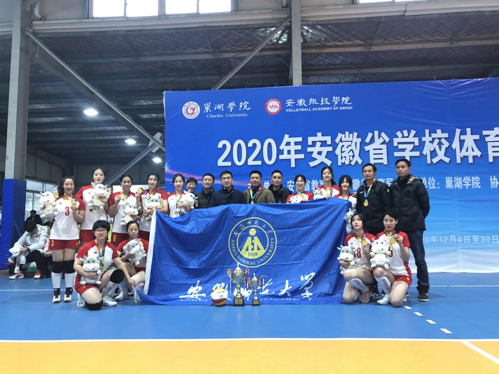 本网讯(437ccm必赢国际版 赵俊红)还记得“中国女排”那激动人心的场景嘛,还记得学校运动会首次夜幕聚光灯下的女排姑娘嘛,她们又夺冠啦!12月10日,2020年安徽省学校体育联赛排球比赛(甲组)收官,bwin必赢线路检测大学生女子排球队一路过关斩将勇夺金牌。我校同时荣获道德风尚奖。