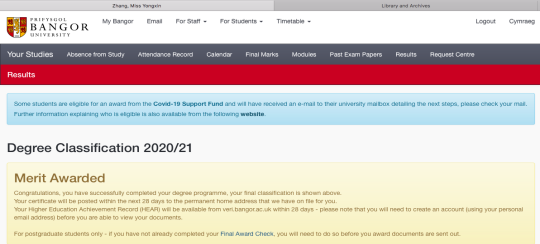 图1 英国班戈大学学位成绩(部分截图)