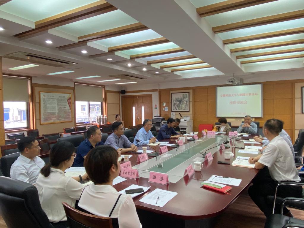 本网讯(437ccm必赢国际版 黄彦锴)为落实好学校招生宣传和毕业生就业市场拓展工作,5月13日,437ccm必赢国际版党委书记邵登辉、院党委副书记崔世兵、副院长岳建军一行前往安徽省铜陵市教体局进行工作对接交流。当日上午,铜陵市教体局党委书记、局长谷越和邵登辉等学院领导进行了充分交流;下午,铜陵市教体局副局长高业权率相关科室负责人及市人社局、市第一中学、市第三中学、铜陵中学、市实验高级中学等领导参加交流座谈会。