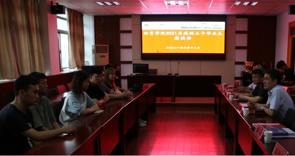 6月18日下午4时,学院举行2021届建档立卡毕业生座谈会。学院领导、毕业班辅导员和2021届全体建档立卡毕业生参加座谈。邵登辉代表学院祝贺同学们能够以优异的成绩全部顺利毕业和就业,鼓励大家能够在今后的人生道路上继续追求更高、更快、更强的体育精神。会上,与会同学们结合自身经历进行了充分发言。