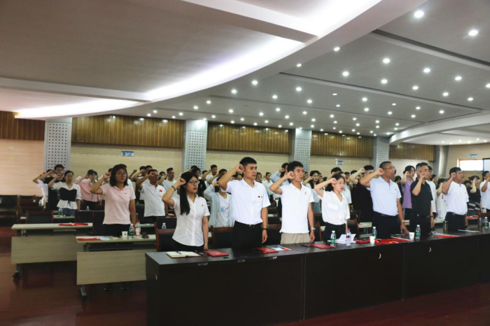 会上,学校“优秀共产党员”周坤、李立群分别以“为人民服务”和“担当作为为党育人”为主题,给全体师生党员上了“七一”专题党课。学院党委书记邵登辉带领党员重温入党誓词、新党员入党宣誓,铿锵有力向党组织郑重承诺。