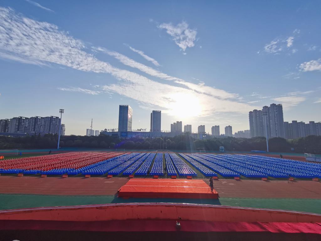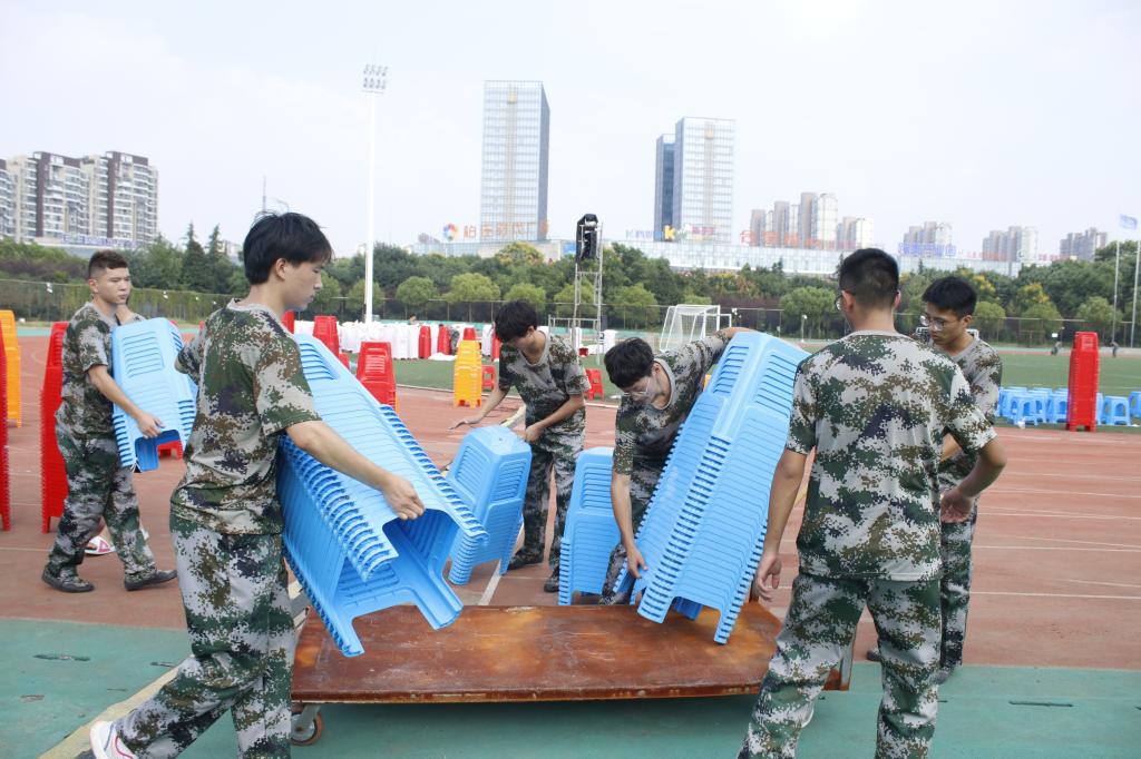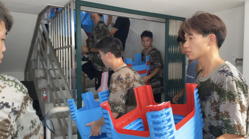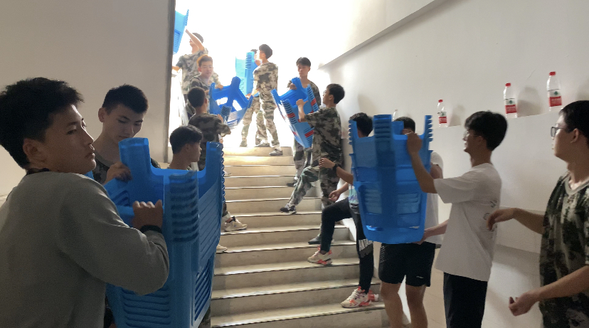 为确保开学典礼时一万多名新生能够有位可坐、有序入座,437ccm必赢国际版2021级新生在院领导、老师和辅导员的带领下,在北侧田径场进行板凳搬运和摆放工作。下午1:00,志愿者以饱满的精神状态投入到工作之中。现场工作分工明确、秩序井然,男生将板凳搬至指定位置,女生按照固定的间距排列板凳,以达到整齐划一的效果。经过整整一个下午的辛勤努力,一万多只凳子整齐摆放在典礼现场。在9月16号新生开学典礼结束后,志愿者又将板凳收拾搬回仓库,还原操场的干净、整洁。