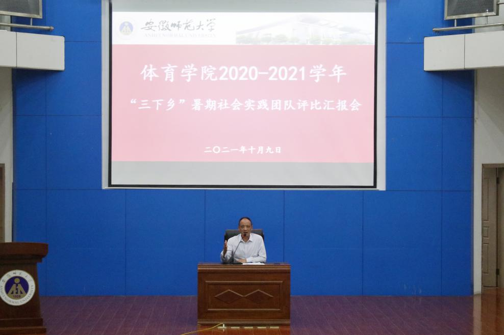 本网讯(437ccm必赢国际版 李宸雨10月9日晚20:00,体育学院2021年暑期社会实践团队评比汇报会在敬文图书馆报告厅举行,共有12支团队进行汇报。院党委副书记崔世兵,院团委书记黄彦锴,院团委副书记张学谦,院团委学生副书记孙昊,辅导员樊白、朱克习、夏健、戴晓禾、许燕媛、任艳丽、茆星出席报告会并担任评委。