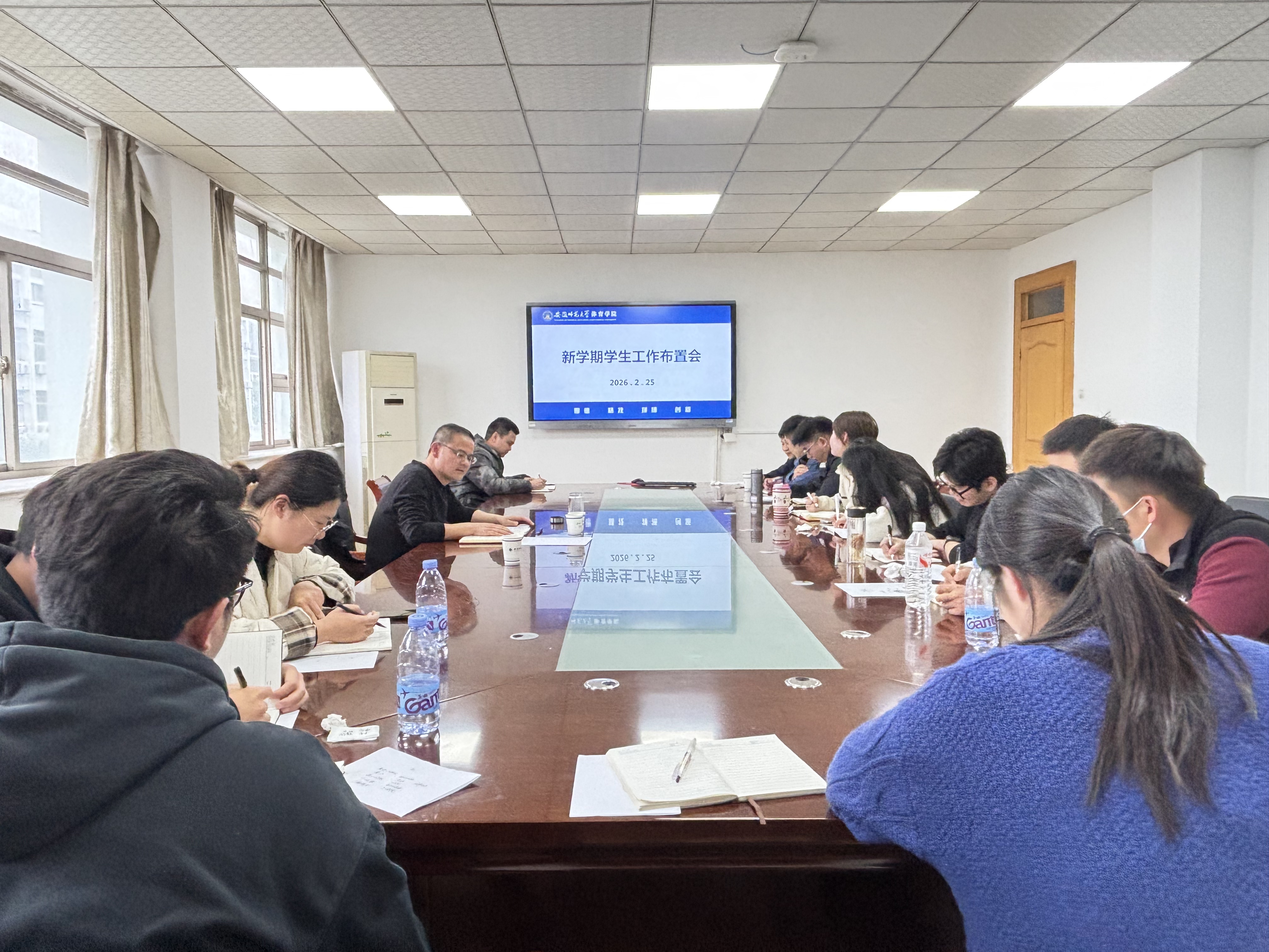 2 月 25 日下午,学院在行政楼三楼会议室召开新学期必赢国际布置会。学院党委副书记付勇主持会议,全体专兼职辅导员参加。