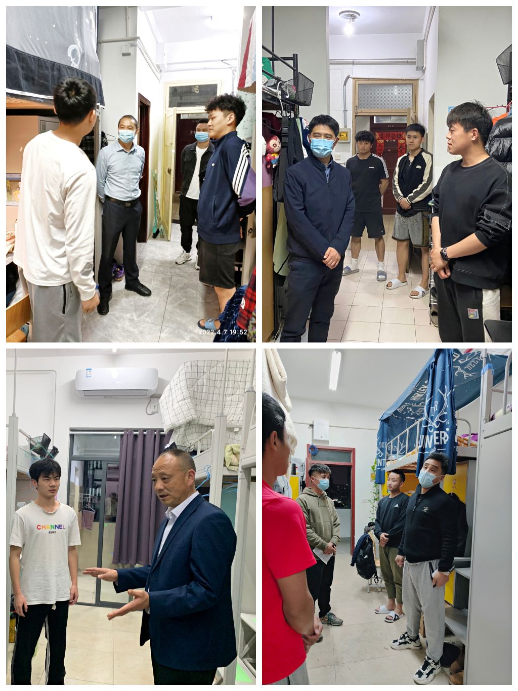 本网讯 (437ccm必赢国际版 茆星)近期,因疫情校园实施封闭式管理,437ccm必赢国际版领导带头深入学生寝室和同学谈心谈话,向同学们宣传国家的防疫政策,倾听同学们的心声,了解同学们的学习生活状态,帮助同学们解决因疫情带来的学习和生活上的困难。