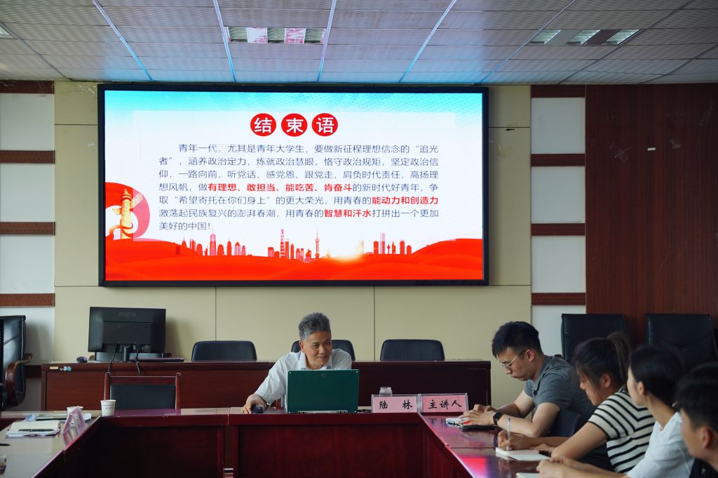 陆林以新时代新青年应当坚定不移跟党走、为党和人民奋斗为主线,从庆祝中国共产主义青年团成立100周年大会概况、习近平总书记重要讲话精神解读、寄语新时代青年大学生三个方面进行了深刻、系统的阐述。陆林指出,青年的命运,从来都同时代紧密相连。在党的领导下,共青团不忘初心、牢记使命,走在青年前列,为争取民族独立、人民解放和实现国家富强、人民幸福而贡献力量。百年征程,塑造了共青团坚守理想信念的政治之魂、投身民族复兴的奋进之力、扎根广大青年的活力之源。他强调,新时代青年大学生应肩负历史使命,着力提升“四力”,积极追求进步,践行“五个模范”。同学们要涵养政治定力,炼就政治慧眼,恪守政治规矩,坚定政治信仰,一路向前,听党话、跟党走,肩负时代责任,高扬理想风帆,做有理想、敢担当、能吃苦、肯奋斗的新时代好青年,真正践行为新时代奋斗。