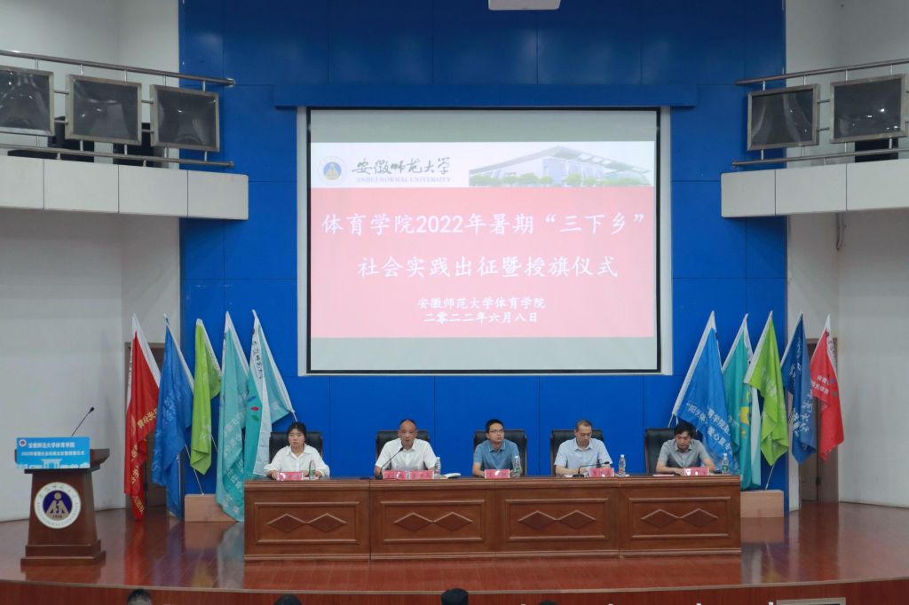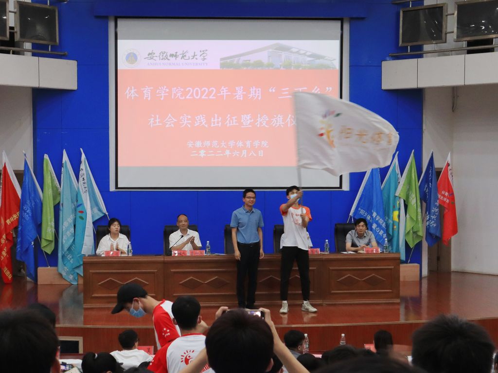 本网讯(437ccm必赢国际版 文/李雯 图/张雨琛)喜迎二十大、永远跟党走、奋进新征程。6月8日下午,437ccm必赢国际版在花津校区敬文图书馆报告厅举行437ccm必赢国际版2022年暑期“三下乡”社会实践出征暨授旗仪式。校团委书记汪凯、437ccm必赢国际版党委书记黄德春、副院长岳建军、指导教师代表沈文清及随队教师、暑期社会实践志愿者代表参会,仪式由院党委副书记崔世兵主持。