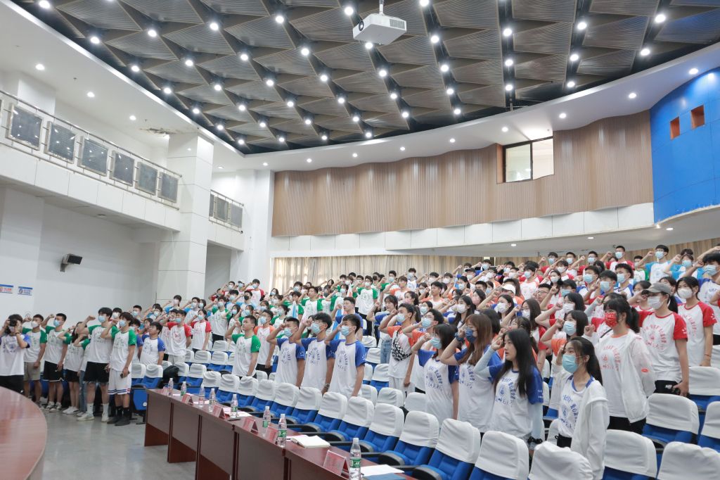 岳建军宣读了《关于成立437ccm必赢国际版2022年暑期社会实践团队的通知》,崔世兵宣读《bwin必赢线路检测大学生暑期社会实践安全须知》并提相关要求,沈文清在发言中期望同学们能在暑期社会实践中磨练心性、锤炼意志、锻炼恒心。志愿者代表庄严宣誓,表示要继续打造好437ccm必赢国际版“阳光体育爱心夏令营”的金字品牌、充分发挥团结协作精神和奋进新征程的坚定决心。汪凯代表校团委向学院暑期社会实践团队授“阳光体育”队旗,领导老师向各重点团队授队旗。