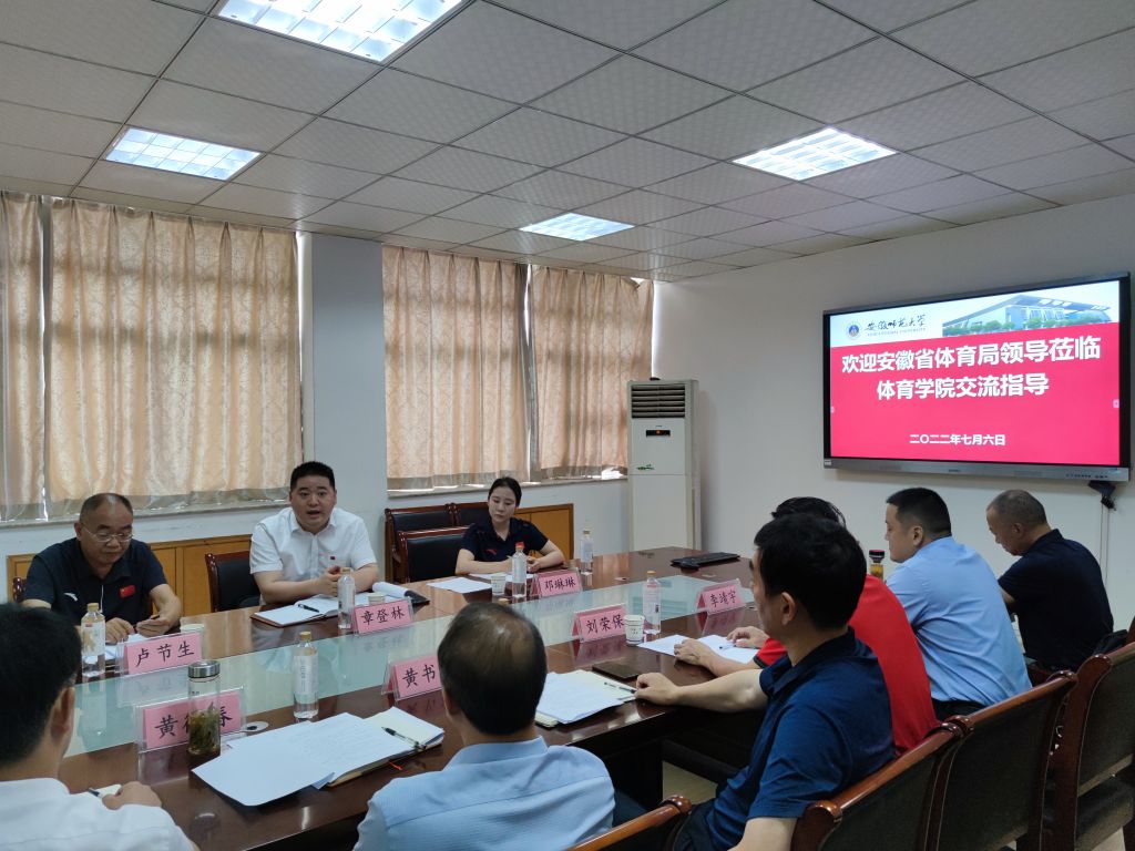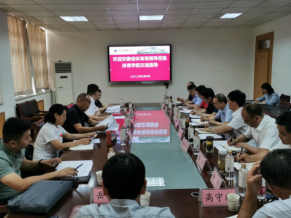 本讯网(437ccm必赢国际版 朱克习)为充分发挥体育、教育的优势资源,深化“体教融合”走深走实,安徽省体育局、芜湖市体育局一行于7月6日上午在我院三楼会议室围绕如何更好地开展体操项目合作共建进行深度交流。出席会议的有安徽省体育局人事处处长卢节生、人才交流中心主任黄新竹、体操击剑运动管理中心副主任章登林、体操击剑运动管理中心办公室主任张齐飞、奥运会体操冠军邓琳琳,以及芜湖市体育局黄书农、刘荣保、李靖宇、李贤跃和437ccm必赢国际版全体领导班子成员,会议由437ccm必赢国际版院长金涛主持。