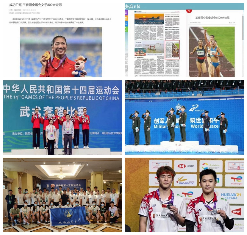 2021年,王春雨在东京奥运会上荣膺女子800米第五名,创造中国田径历史;谭强在第七届世界军人运动会摘得两金一银,在2021年羽毛球苏迪曼杯比赛中获得团体冠军和羽毛球世锦赛男子双打中获得亚军;赖晓晓参加第11届世界运动会勇夺女子长拳冠军;师大佳兆业足球俱乐部参加2022年中国足协女足乙级联赛,获得第5名;在第十四届全国运动会上,斩获3金1银1铜(王春雨荣获女子800米、1500米冠军以及400米亚军,赖晓晓荣获武术套路女子拳、剑、枪全能项目冠军,谭强荣获男子双打季军);在全国学生运动会上,王春雨共获得2块金牌;在第15届省运会高校部比赛上,目前我校健儿已获得48金23银11铜,金牌总数暂居全省高校首位。