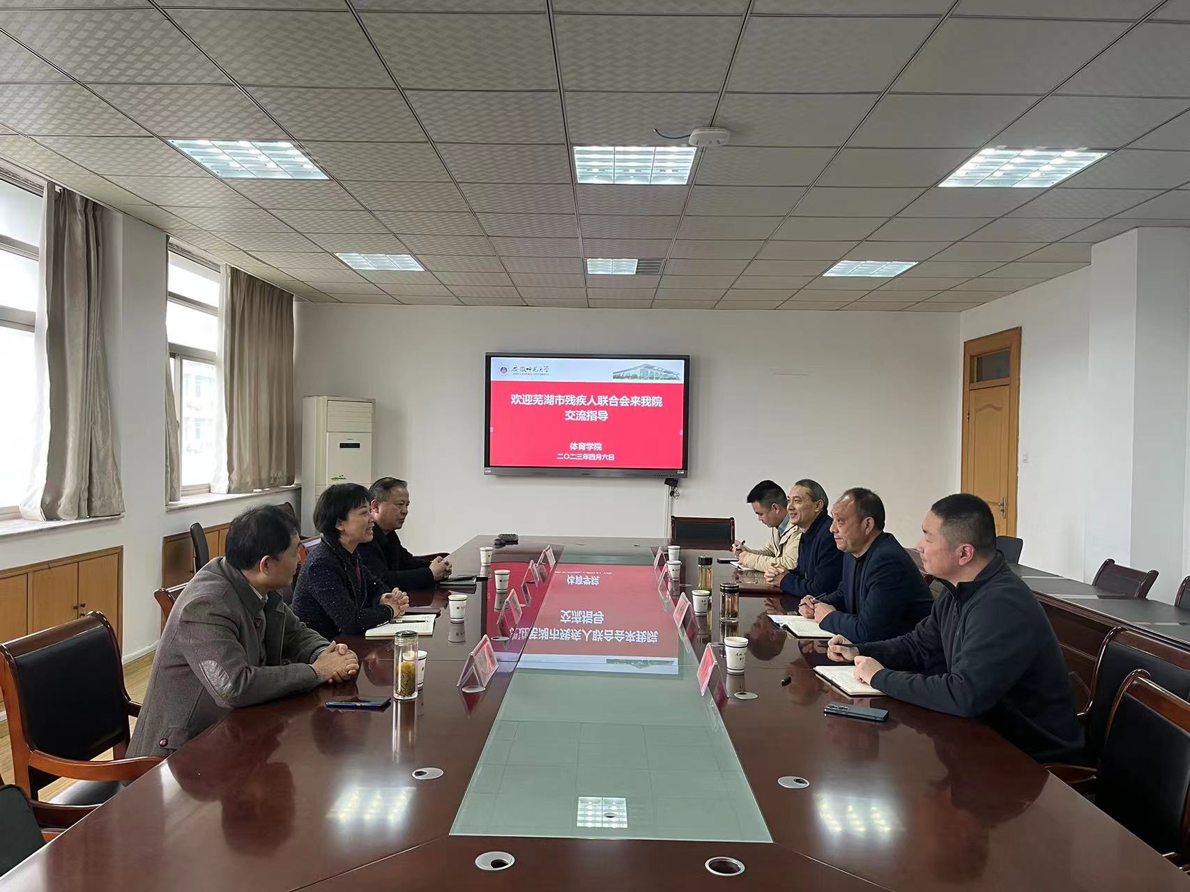 近日,437ccm必赢国际版与芜湖市残联在学院三楼会议室举行战略合作会商座谈会。市残疾人联合会党组书记、理事长陈玉红,副理事长陈开宏、邹培义,437ccm必赢国际版党委书记黄德春、副书记崔世兵及有关人员参加座谈会。