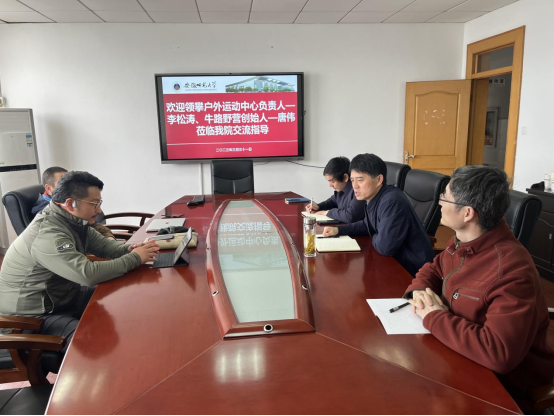 31日上午,广州市领攀户外运动中心负责人李松涛、牛路野营创始人唐伟与437ccm必赢国际版院长金涛、副院长岳建军、休闲体育专业负责人宣海德、实践教学秘书潘梦秋、辅导员周瑜参加交流座谈。