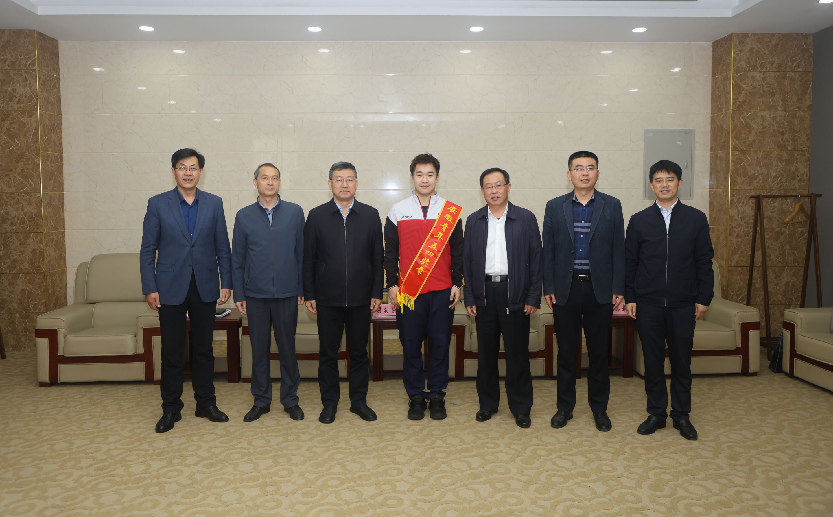 谭强在发言中对学校的悉心栽培和学校领导的肯定鼓励表示衷心感谢,汇报了自己下一步的学习、训练及比赛计划,表示将一如既往地刻苦训练,不断拼搏进取,努力再创佳绩,为国、为校争光。