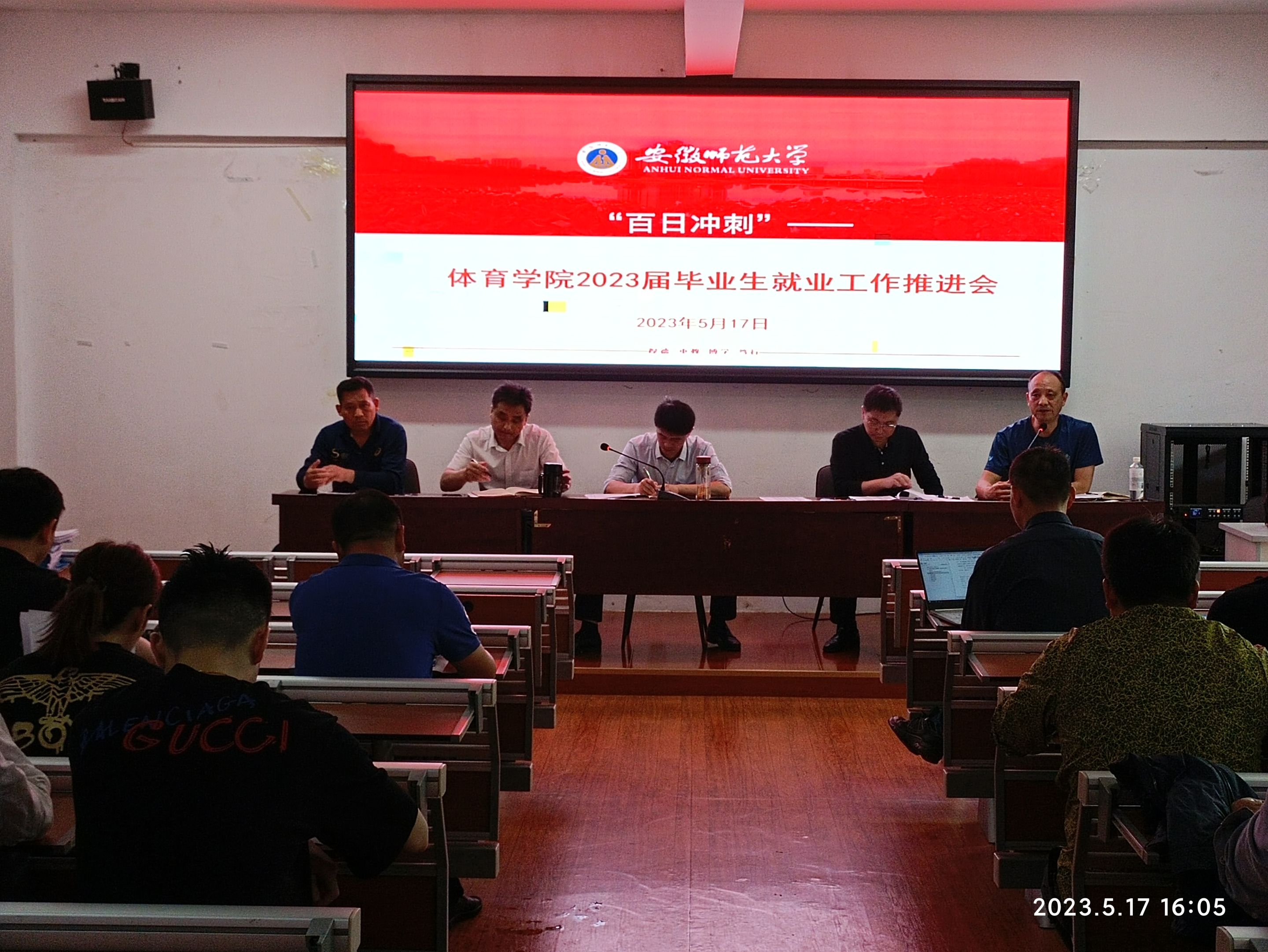 本网讯(437ccm必赢国际版) 2023年5月17日下午,437ccm必赢国际版在北侧田径场会议室举行2023届毕业生就业工作推进会,学院领导班子、专业负责人、2019级本科生专选(专项)课教师、2023届研究生导师、毕业班辅导员参加会议,会议由院长金涛主持。