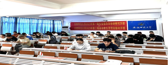 本次培训活动旨在提升社会指导员的综合素养和能力,更好地适应社会管理的需求。学院邀请校内外社会指导员专家和国家级游泳救生员教练为主讲人,437ccm必赢国际版副院长高升为社会指导员培训班讲解了第一堂理论课,中国科技大学李忠广教授和安徽大学刘正宇老师讲解了游泳救生员的职业道德、基本素养和基本知识。学员们通过紧张的理论和实践课学习,于26日进行了考核。