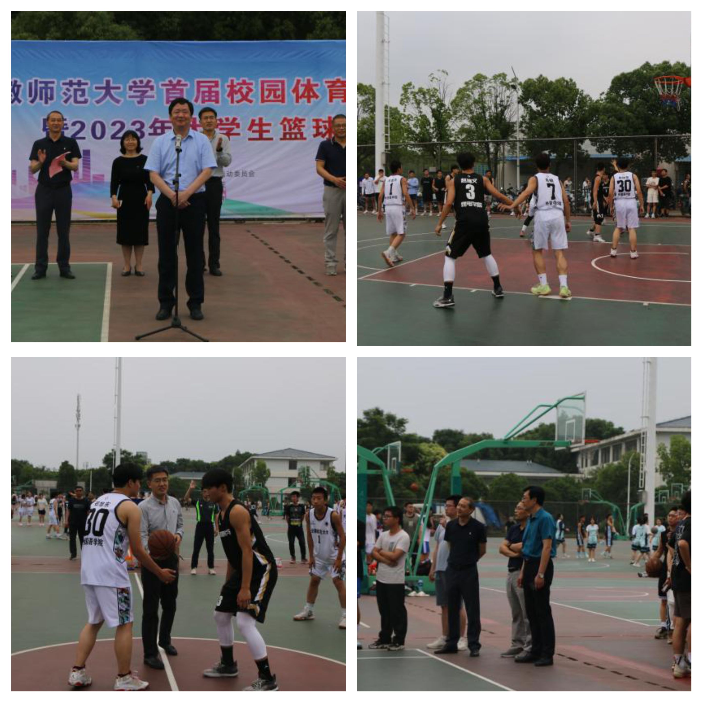 本网讯(437ccm必赢国际版)2023年5月31日下午,bwin必赢线路检测首届校园体育文化节暨2023年大学生篮球赛在花津校区南侧篮球场隆重开幕。校党委常委、宣传部部长胡靖,校巡查办公室主任马广见,校必赢国际处处长邵登辉,校研究生院院长桑青松,校教务处副处长赵冬梅,校团委副书记陈骁,437ccm必赢国际版副院长、校体委办公室主任余涛,校体委办公室秘书吴爱兵,本次篮球赛裁判长蒋先军出席开幕式。开幕式由437ccm必赢国际版党委书记黄德春主持。