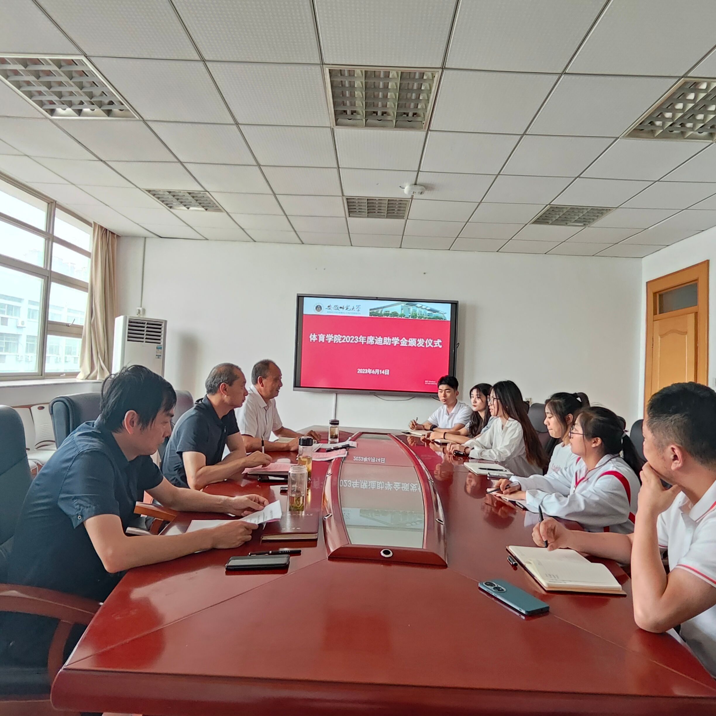本网讯 2023年6月14日下午,437ccm必赢国际版在行政楼四楼会议室举行2023年席迪助学金颁发仪式。437ccm必赢国际版党委书记黄德春、院党委副书记崔世兵、副院长岳建军,辅导员代表和席迪助学金三名受助学生参加本次助学金颁发仪式。仪式由崔世兵主持。
