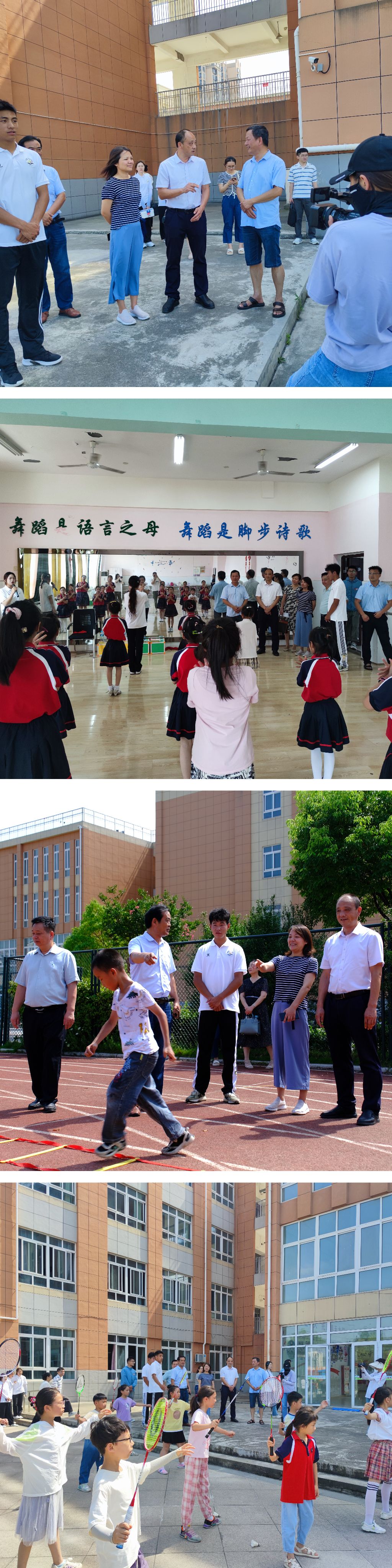 在四小校长和团队队长带领下,崔世兵一行观看了篮球、武术、足球、田径、拉丁等课程教学活动。