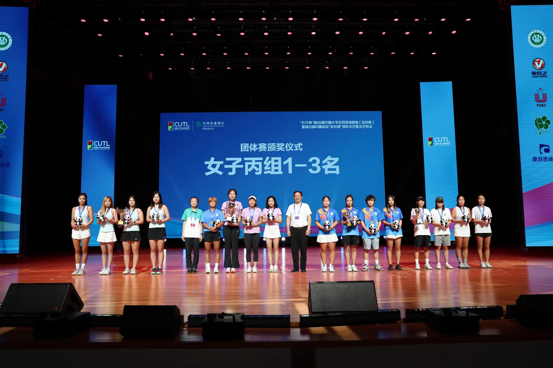 本网讯 8月8日—17日,中国大学生体育协会主办,中国大学生体育协会网球分会执行,四川轻化工大学承办的第26届中国大学生网球锦标赛在四川轻化工大学举行,本届锦标赛共有来自全国各地110所高校782名学生运动员参赛。赛事分为男、女甲组(普通组)、乙组(高水平组)、丙组(体育院系组)和丁组(超级组),我校女子网球队获得丙组团季军。
