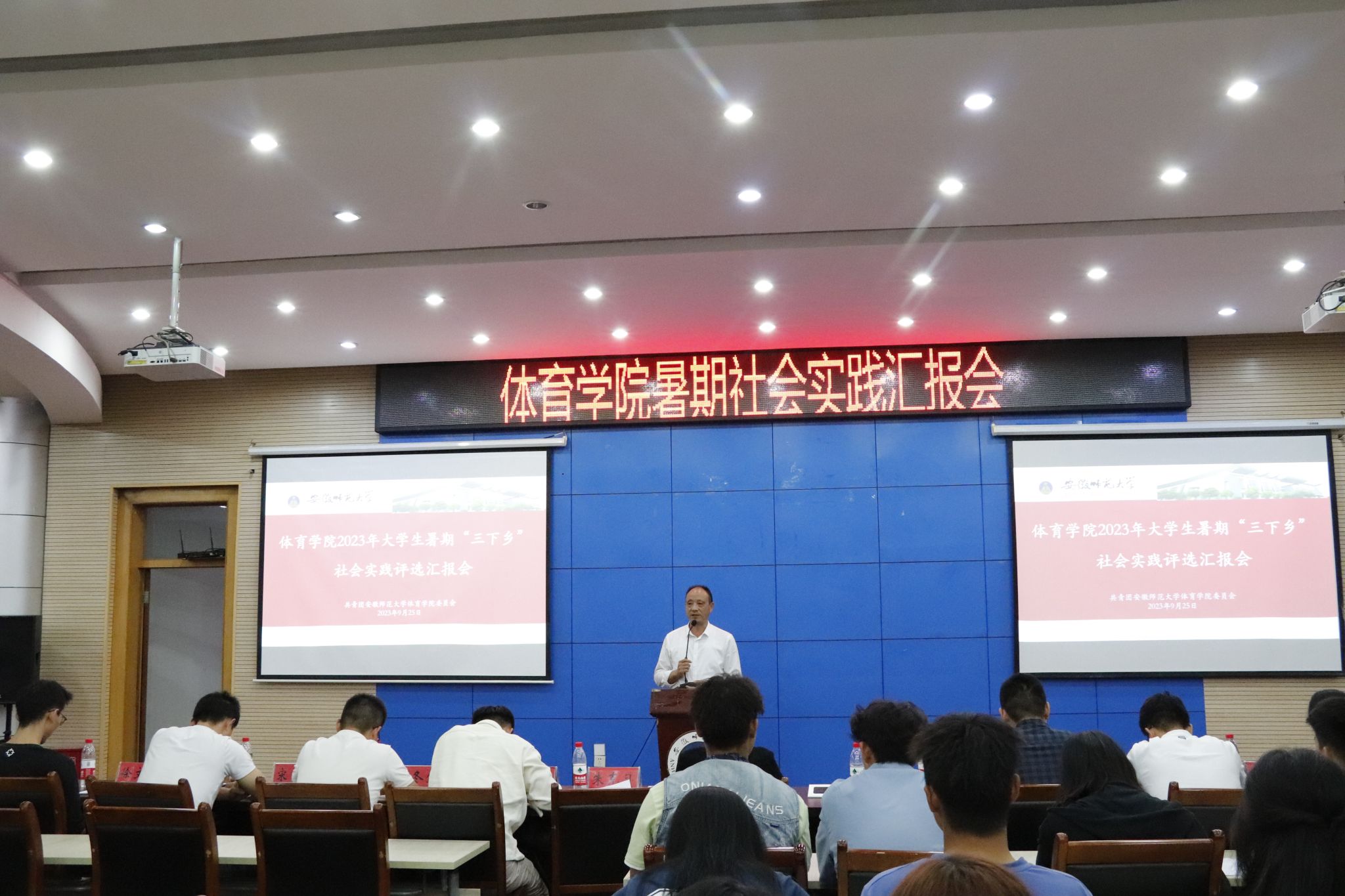 本网讯(朱飒 章海芳)为一步深化“行走的思政课堂”实践育人项目内涵,9月26日,437ccm必赢国际版在花津校区会议中心报告厅举行2023年大学生暑期“三下乡”社会实践评选汇报会。437ccm必赢国际版党委副书记崔世兵、暑期社会实践专业指导老师代表吉喆、院团委书记张学谦、专兼职辅导员以及十三支暑期实践汇报团队学生代表参加此次汇报会。汇报会由院学生会主席团成员张孜君主持。