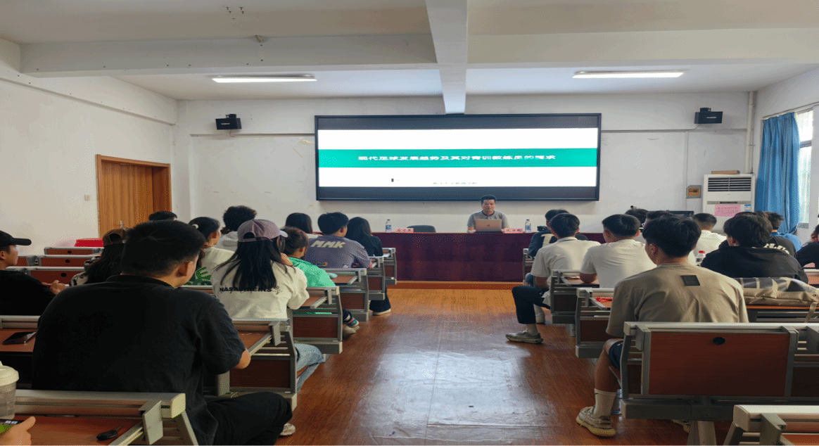 为推动我院足球专业发展,提升足球专业教练员教学能力和管理能力,2023年9月17日上午,浙江大学教育学院成守彬教授应邀来437ccm必赢国际版开展“现代足球发展趋势及其对青训教练员的要求”为主题的专业讲座。437ccm必赢国际版副院长高守东、相关足球专业教师和学生参加了此次讲座。