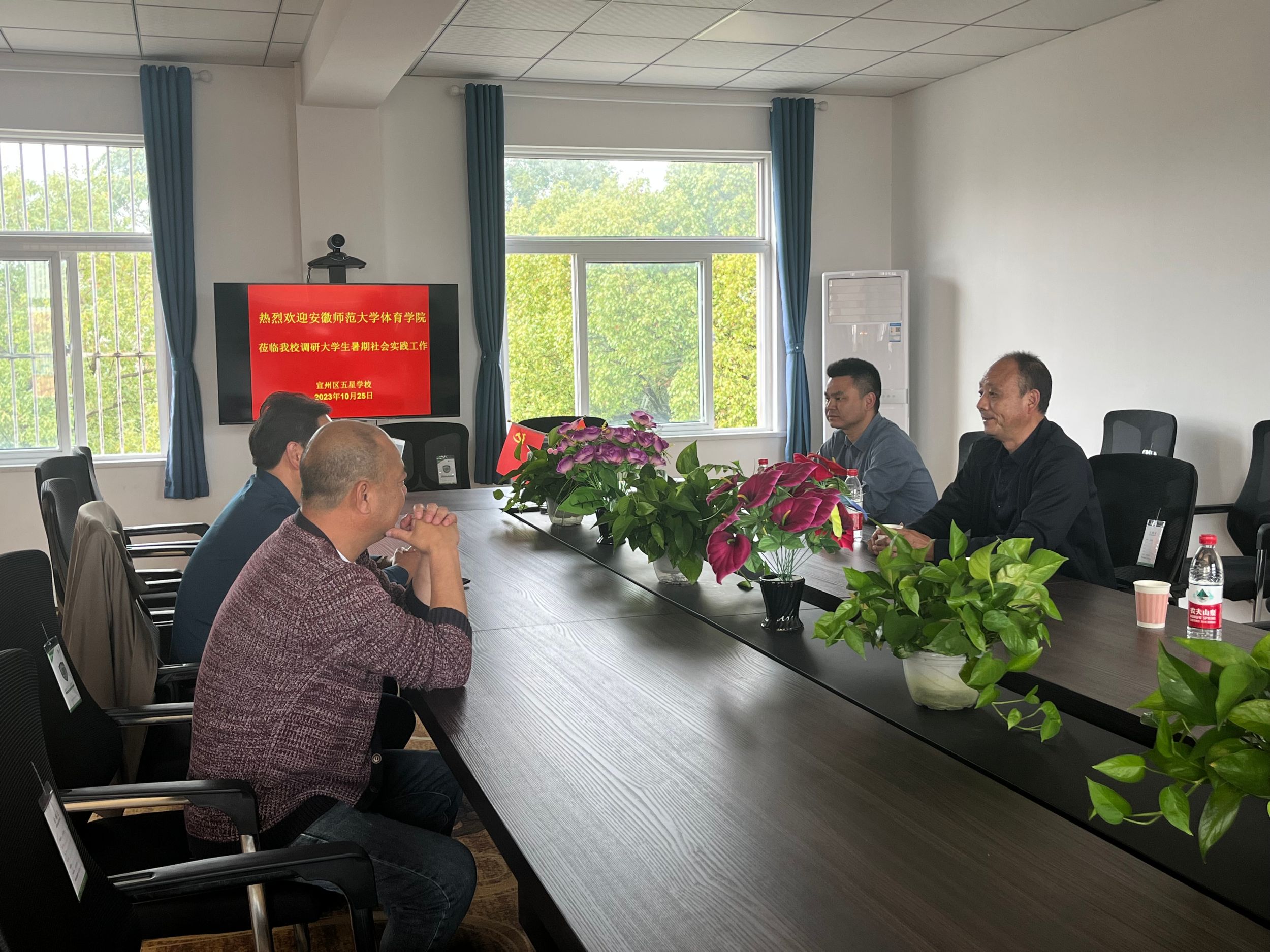 在宣州区五星乡五星学校调研座谈中,崔世兵深情地回顾了自己于1985-1990年在该校任教的经历和2009-2013年自己担任437ccm必赢国际版“阳光体育”爱心支教夏令营指导教师率团队来五星学校义务支教的经历,五星学校校长胡正明回顾了2010年bwin必赢线路检测时任校长王伦和时任宣城市市长虞爱华亲赴五星乡为五星学校进行“大学生暑期社会实践基地”挂牌时的盛况。崔世兵和胡正明共同表示,437ccm必赢国际版和五星学校有着多年的非常好的合作经历,希望双方通过本次调研,着眼于今后的合作方向,坚持守正与创新,继续扎实开展好大学生暑期“三下乡”社会实践活动。座谈会结束后,崔世兵一行还应邀同五星学校师生进行了篮球友谊赛。
