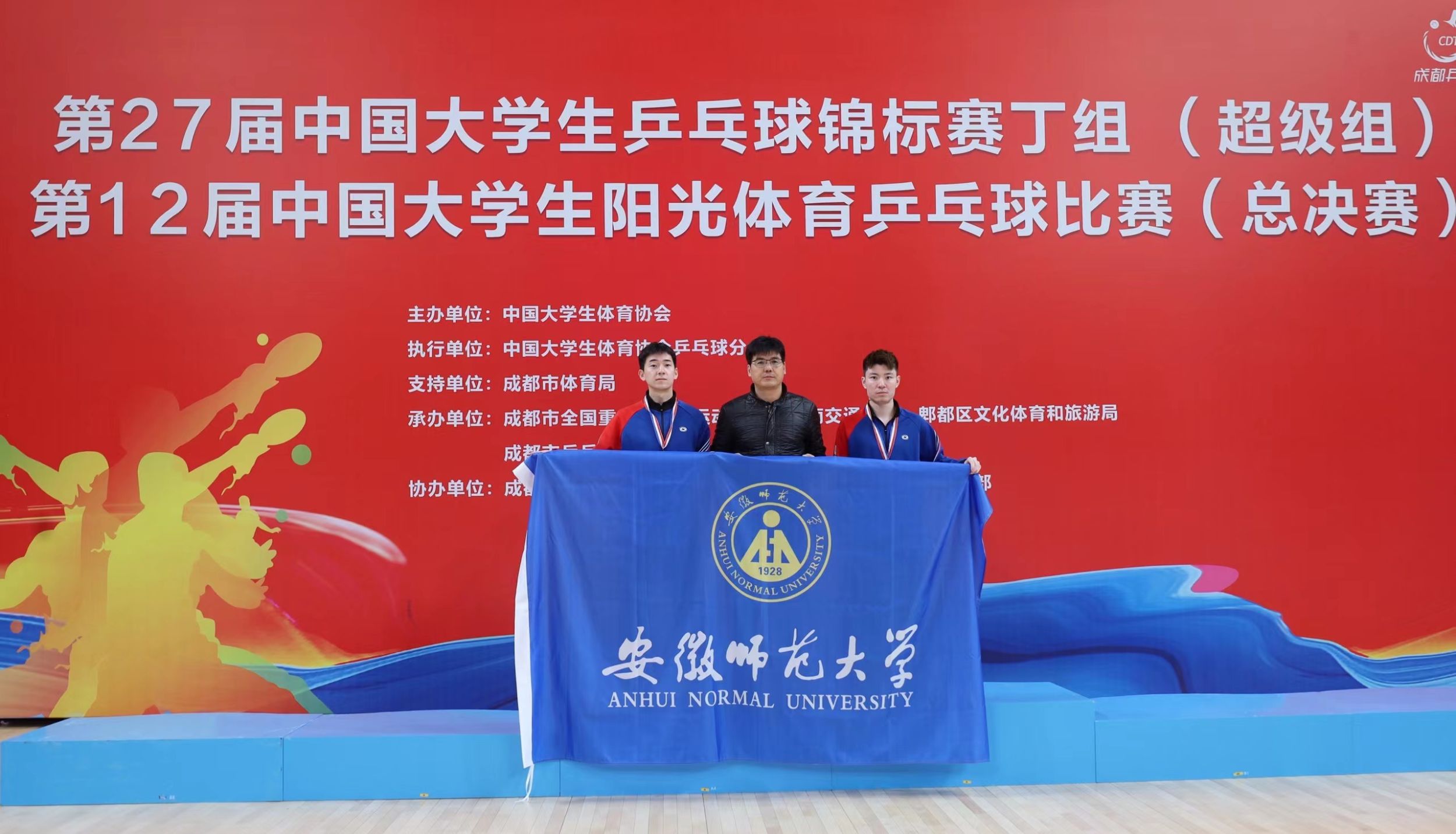 本网讯 (437ccm必赢国际版)2023年11月22日—26日,由中国大学生体育协会主办,成都市体育局支持,成都市全国重点乒乓球运动学校、西南交通大学、郫都区文化体育和旅游局、成都市乒乓球运动中心共同承办的第27届中国大学生乒乓球锦标赛丁组(超级赛)在西南交通大学隆重举行。来自19个学校的126名高水平运动员展开决战。我校437ccm必赢国际版本科生朱诚、研究生刘睿超荣获男子双打季军。