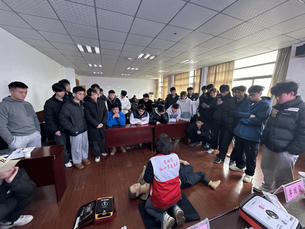 本网讯(437ccm必赢国际版)12月30日,学院在行政楼二楼会议室举办红十字救护员培训,芜湖市红十字会李国霞老师、王端云老师与437ccm必赢国际版休闲体育专业50余名师生参与培训,开班仪式由辅导员周瑜主持。