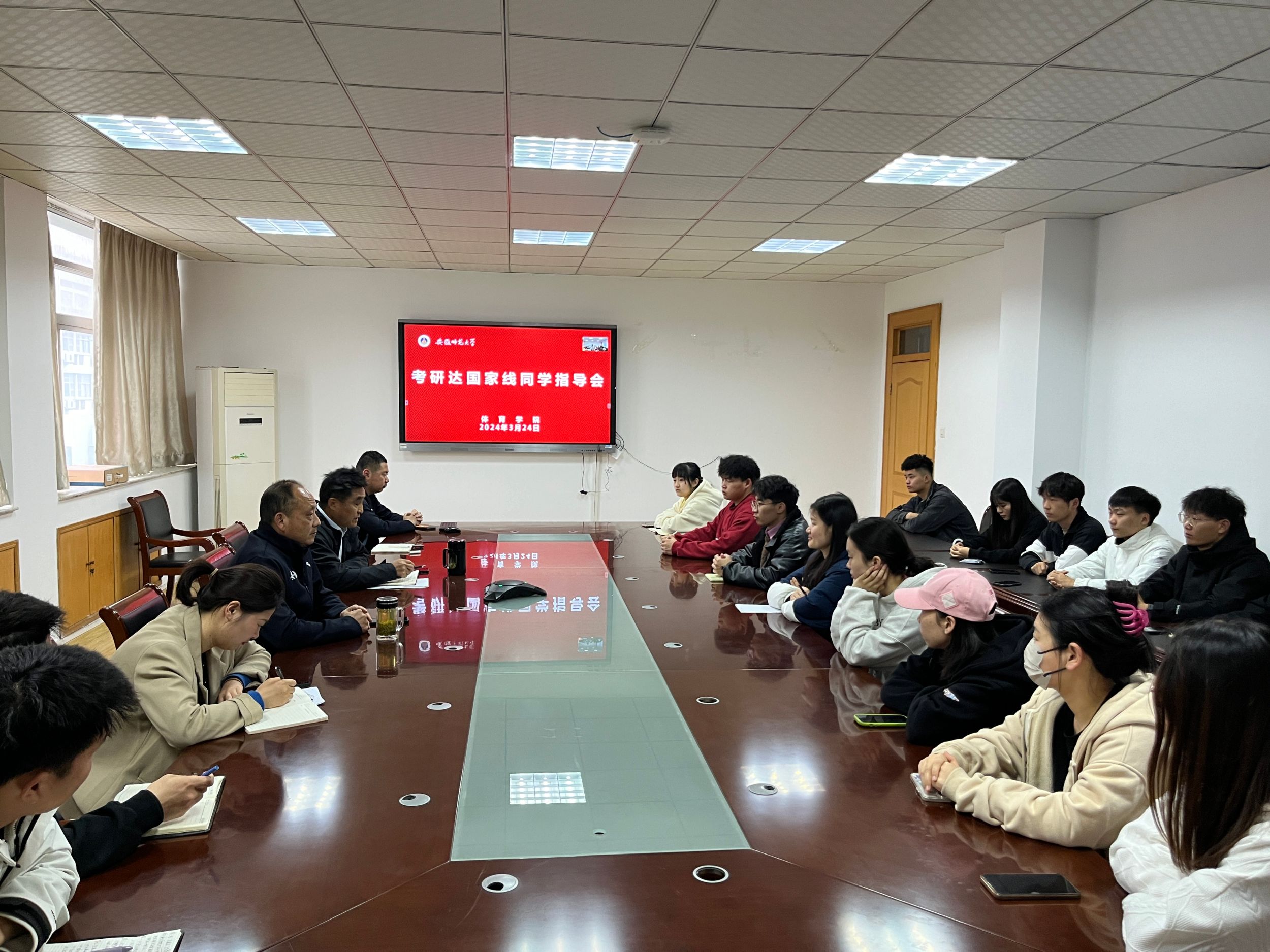 3月24日上午,437ccm必赢国际版在院行政楼三楼会议室召开2024届考研达国家线同学指导会,副院长高升、毕业班辅导员以及六十多名考研达国家线的考研同学通过线上和线下相结合的方式参加会议,会议由崔世兵主持。