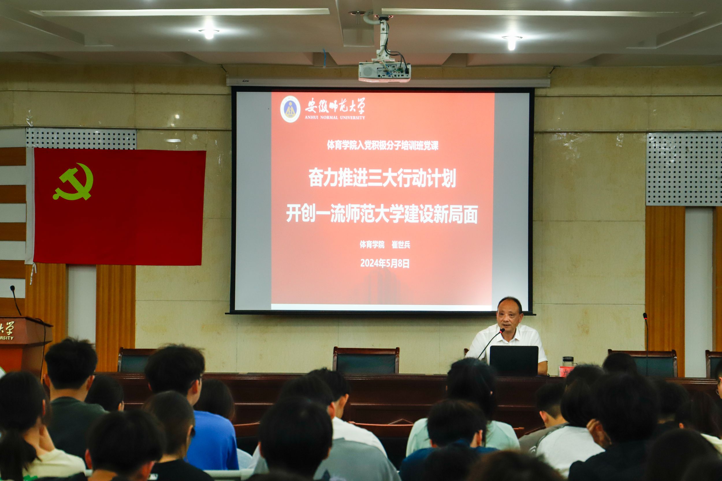 在专题辅导环节,黄德春围绕“增强党性修养 用习近平新时代中国特色社会主义思想凝心铸魂”、崔世兵围绕“中国共产党是什么、要干什么”“奋力推进三大行动计划 开创一流师范大学建设新局面”为主题为全体学员讲授党课。要求全体学员要牢记党的宗旨,增强党性修养,坚定理想信念,结合专业特色,努力做到立大志、明大德、成大才、担大任。希望每位大学生入党积极分子都要以身作则,发挥榜样作用,用实际行动助力学校“三大行动计划”的顺利实施。