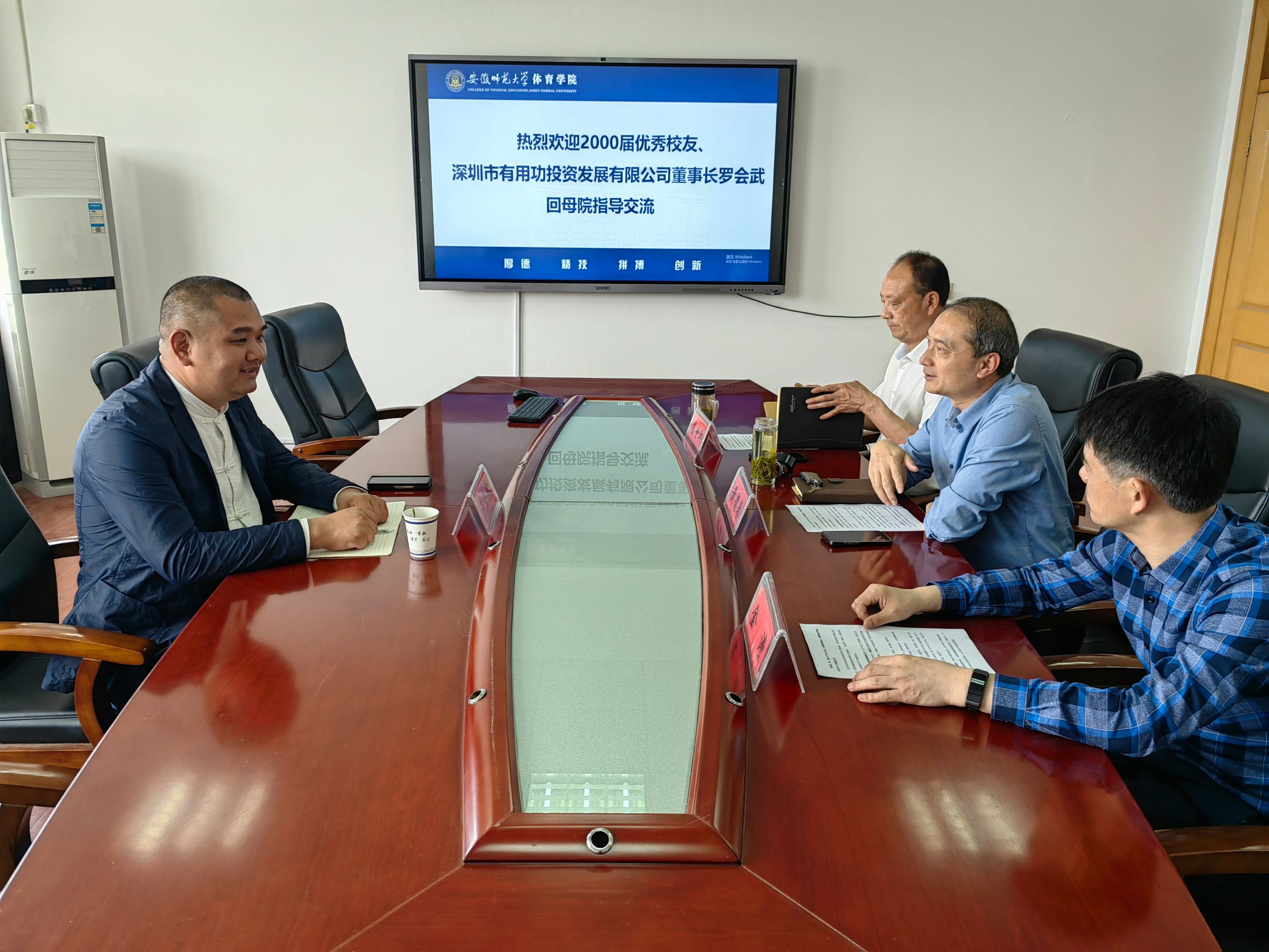 讲座会开始前,437ccm必赢国际版领导和罗会武先生进行座谈,黄德春代表学院对罗会武回母校交流指导工作表示热烈欢迎,金涛介绍了学校和437ccm必赢国际版发展情况,罗会武回顾了二十多年前母校老师教育、关心他的点点滴滴并介绍了其在深圳创业和公司发展情况。