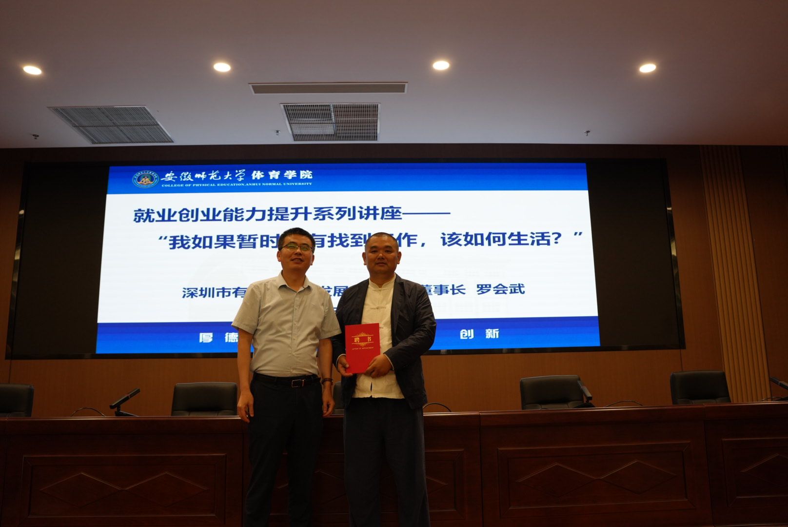 讲座伊始,任永简要介绍了罗会武的创业历程和公司现状,对其长期以来关心学校的发展、为学校大学生护航基金捐助发展资金表示感谢。任永还代表学校为罗会武颁发了创新创业导师证书,并表示学校将为校友企业继续做大做强提供有力的人才支撑,希望其继续为学校的发展和大学生就业工作做出积极贡献。